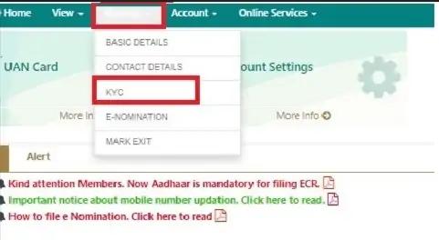 - Enables access to various online EPF services, including downloading the UAN card, viewing/updating personal details, and managing KYC information.